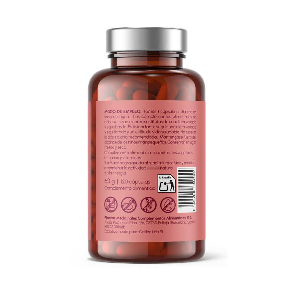 • La maca negra contribuye a mantener niveles normales de energía y vitalidad.