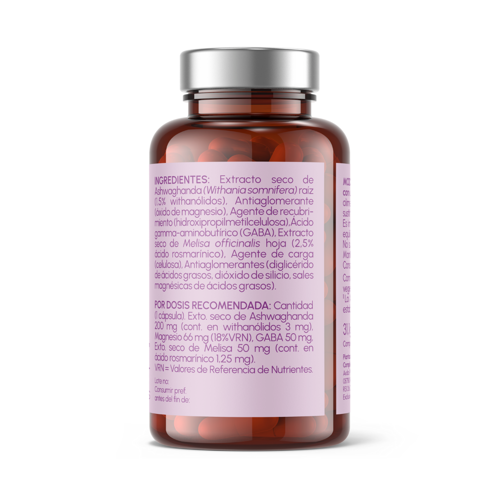 Contiene ashwagandha, magnesio, melisa y gaba.